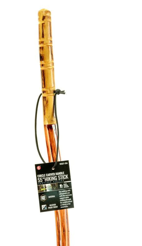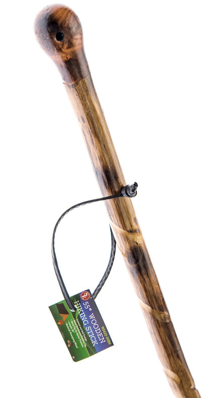 55" "Foam Grip" Wooden Hiking Stick, Spiked Tip & Metal Reinforced Tip Cover, Hard Pine Wood