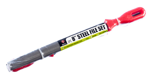 8"/3 Pc Steel File Set With Plastic Handle (Round, Flat, Half Round)