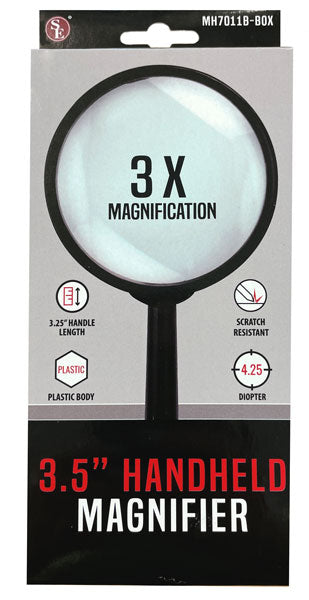 Lupa de mano con lente de vidrio de 3x/3-1/2", paquete en caja