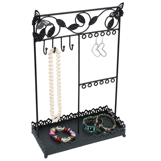 Expositor de metal con bandeja, color negro