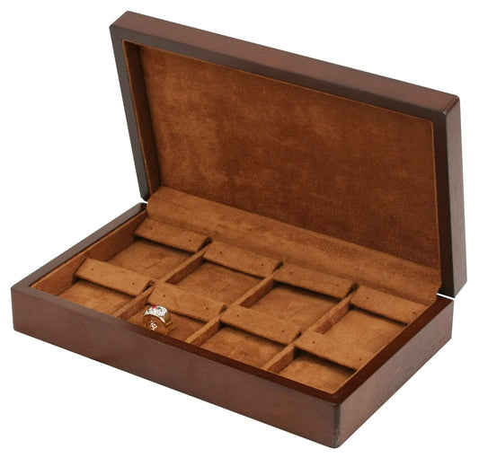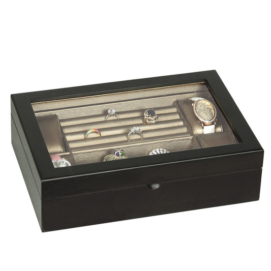 Estuche para anillos y gemelos de palisandro con tapa de cristal