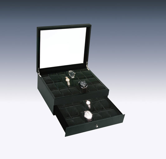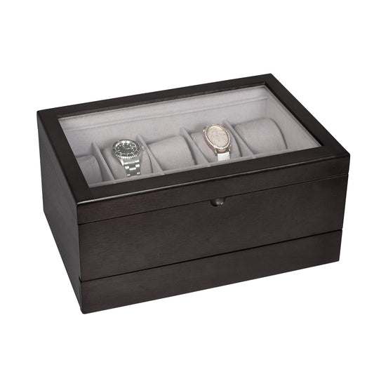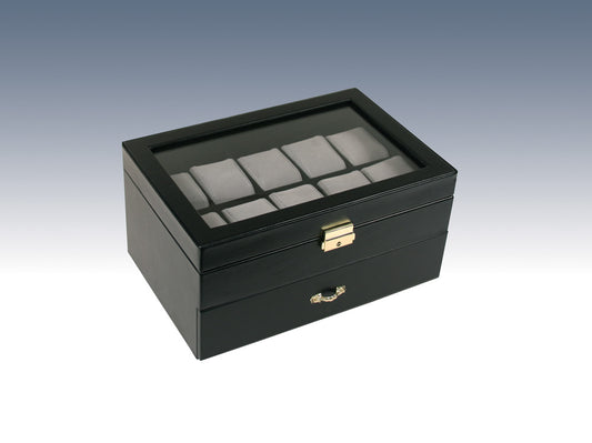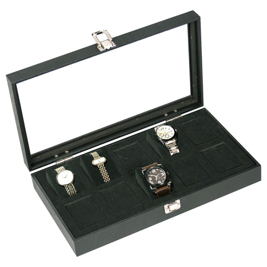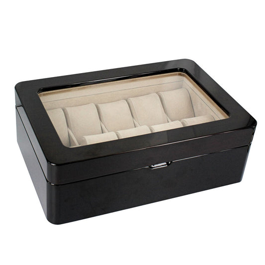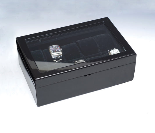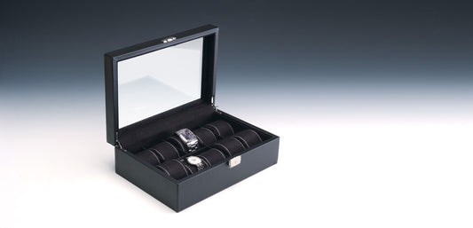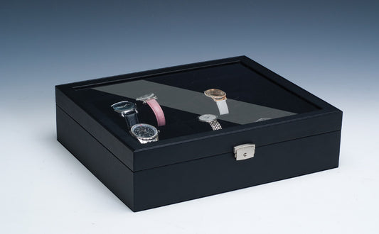 Estuche grande para reloj con tapa de cristal negro