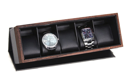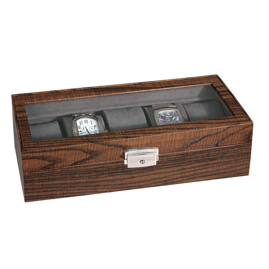 Cajas para relojes con superficie de vidrio y vetas de madera