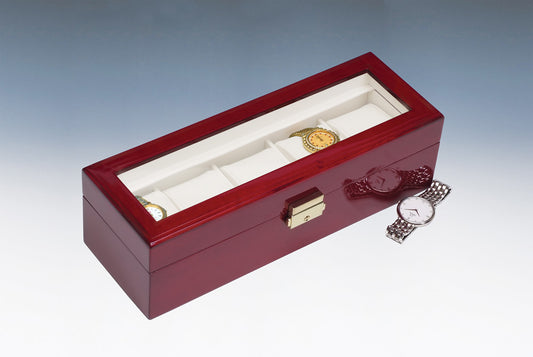 Estuche para reloj de madera con tapa de cristal