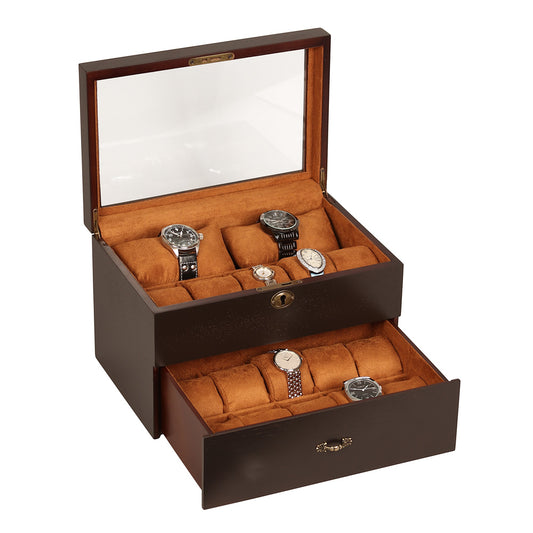 Estuche de madera con tapa de cristal para guardar relojes