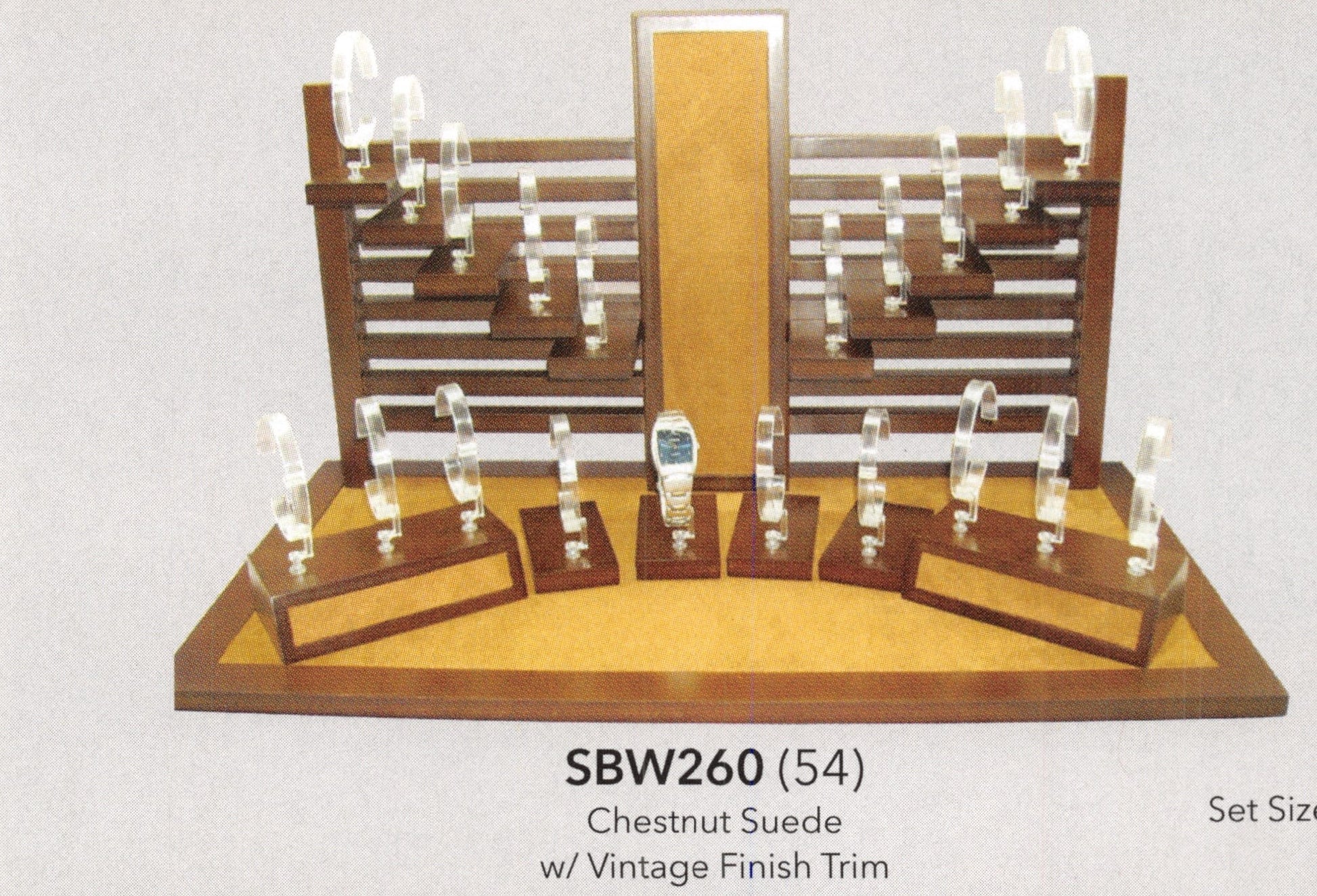 20 relojes x Gamuza color castaño con ribete de acabado vintage - Conjuntos de exhibición de 20 relojes
