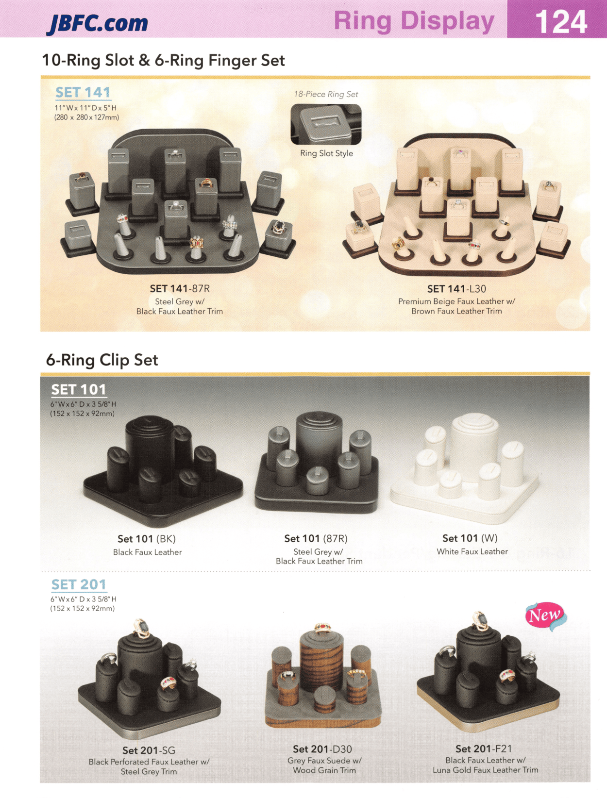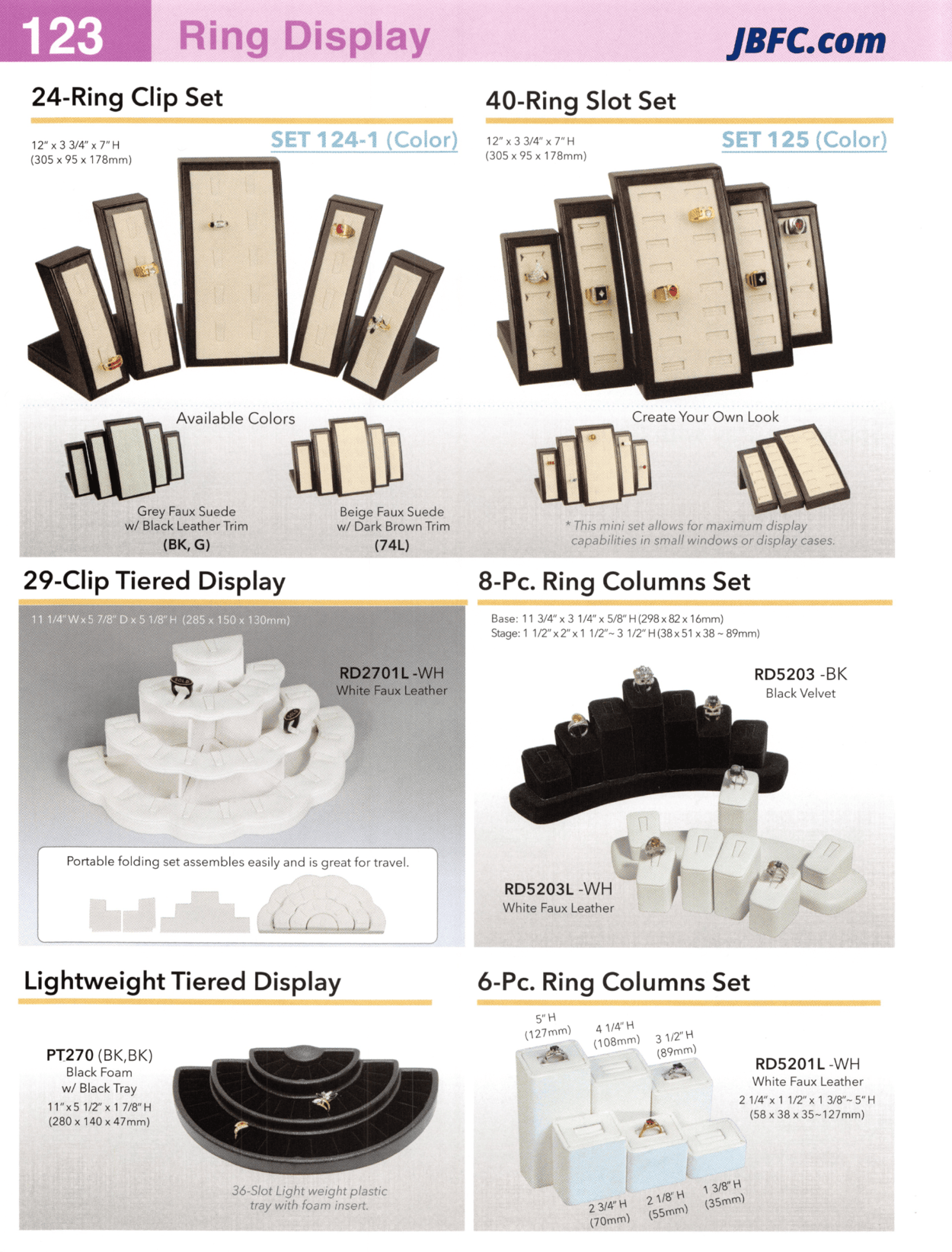 Gamuza sintética beige con ribete marrón oscuro - Juego de 40 ranuras para anillos