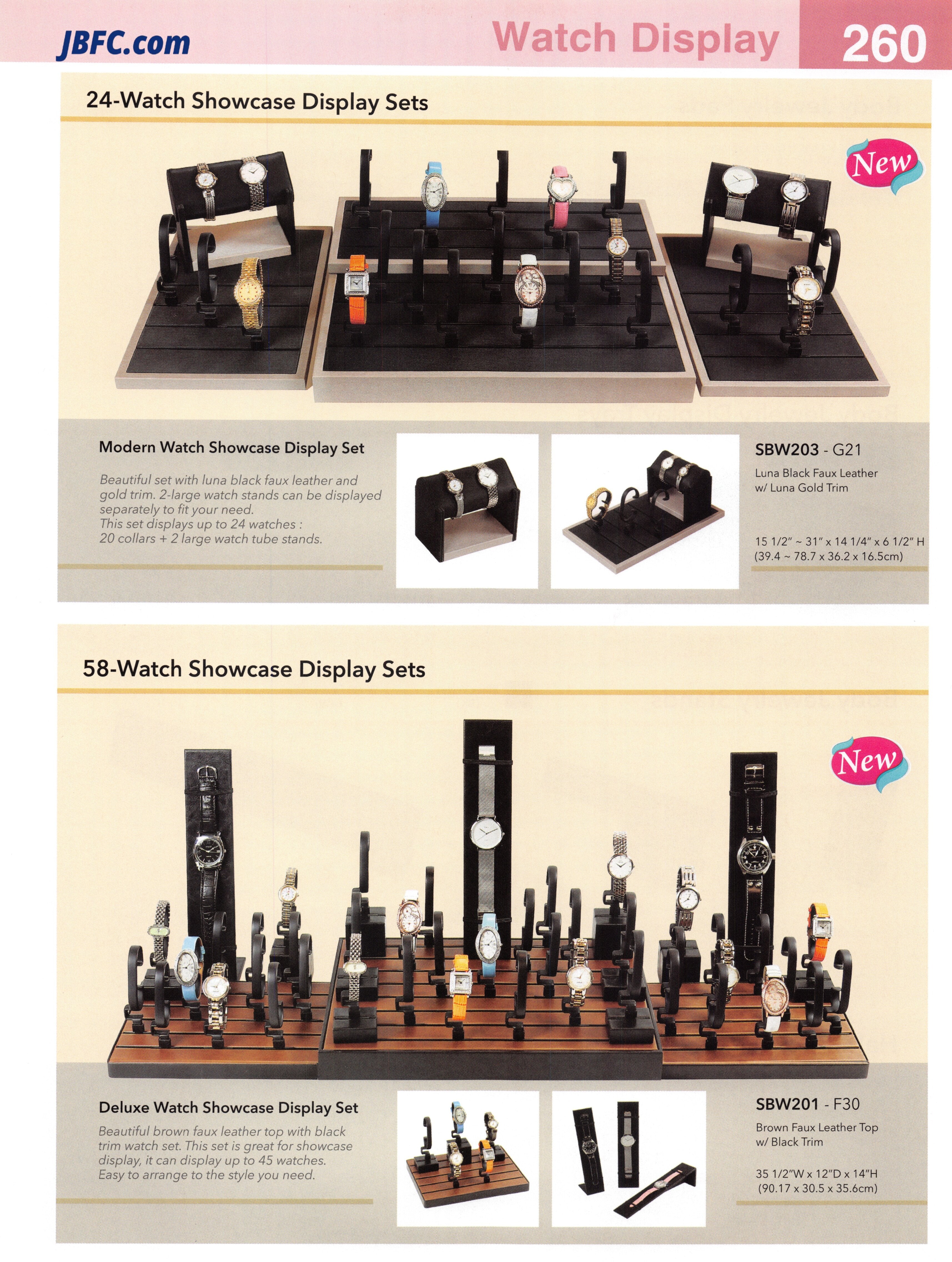 Mirar x Parte superior de piel sintética marrón con ribete negro - Conjuntos de exhibición de 58 relojes