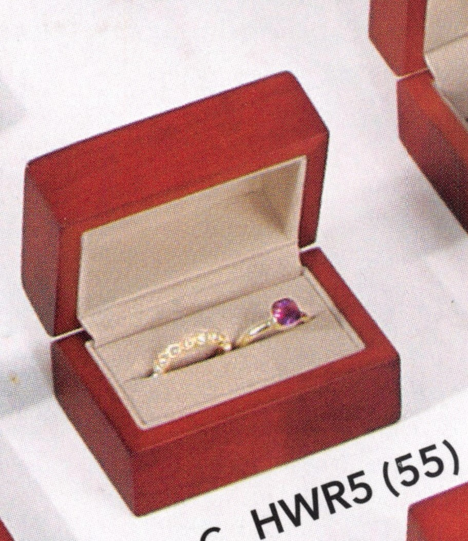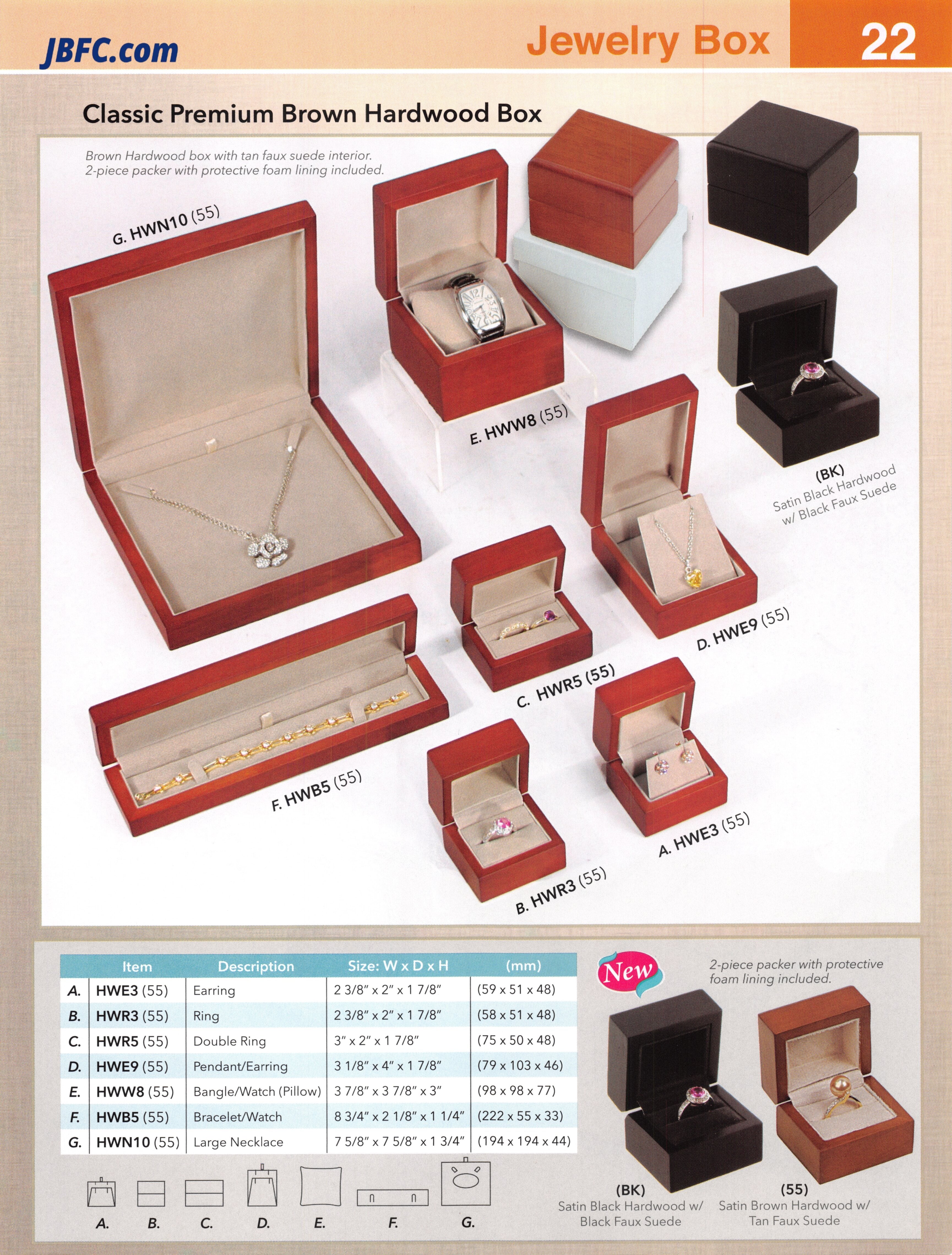 Caja de madera dura marrón con interior de gamuza sintética color tostado. Embalaje de 2 piezas con forro protector de espuma incluido.
