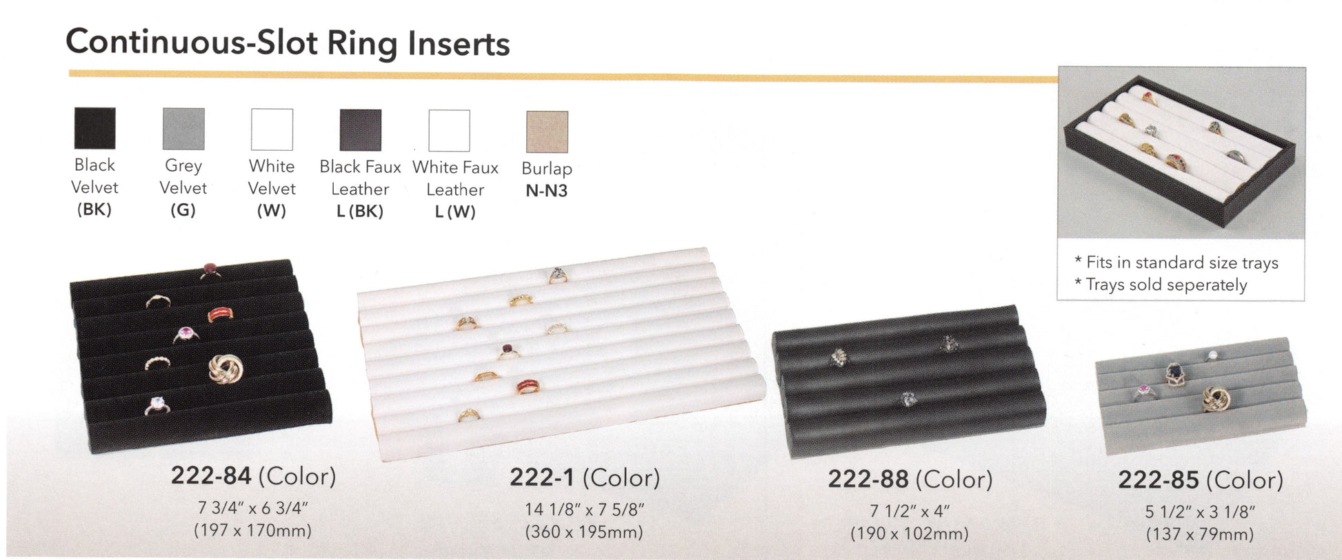 14 1/8 x 7 5/8 x Terciopelo negro - Insertos de anillo de ranura continua
