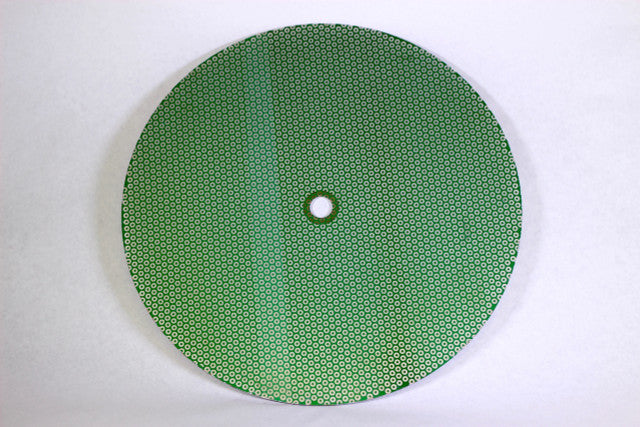Los discos de diamante con respaldo magnético de Covington tienen anillos de diamante niquelados espaciados uniformemente a lo largo de la superficie con pequeñas interrupciones que permiten una menor carga del disco. Los discos de diamante con respaldo magnético se cambian muy rápido y ahora están disponibles en cinco tamaños de grano: extra grueso (60 g), grueso (100 g), medio (260 g), fino (360 g) y extra fino (600 g). Estos discos tienen un orificio de 1" para centrarlos en la placa. Úselos en combinación con la biseladora/amoladora horizontal de 12" de Covington para un rendimiento óptimo.