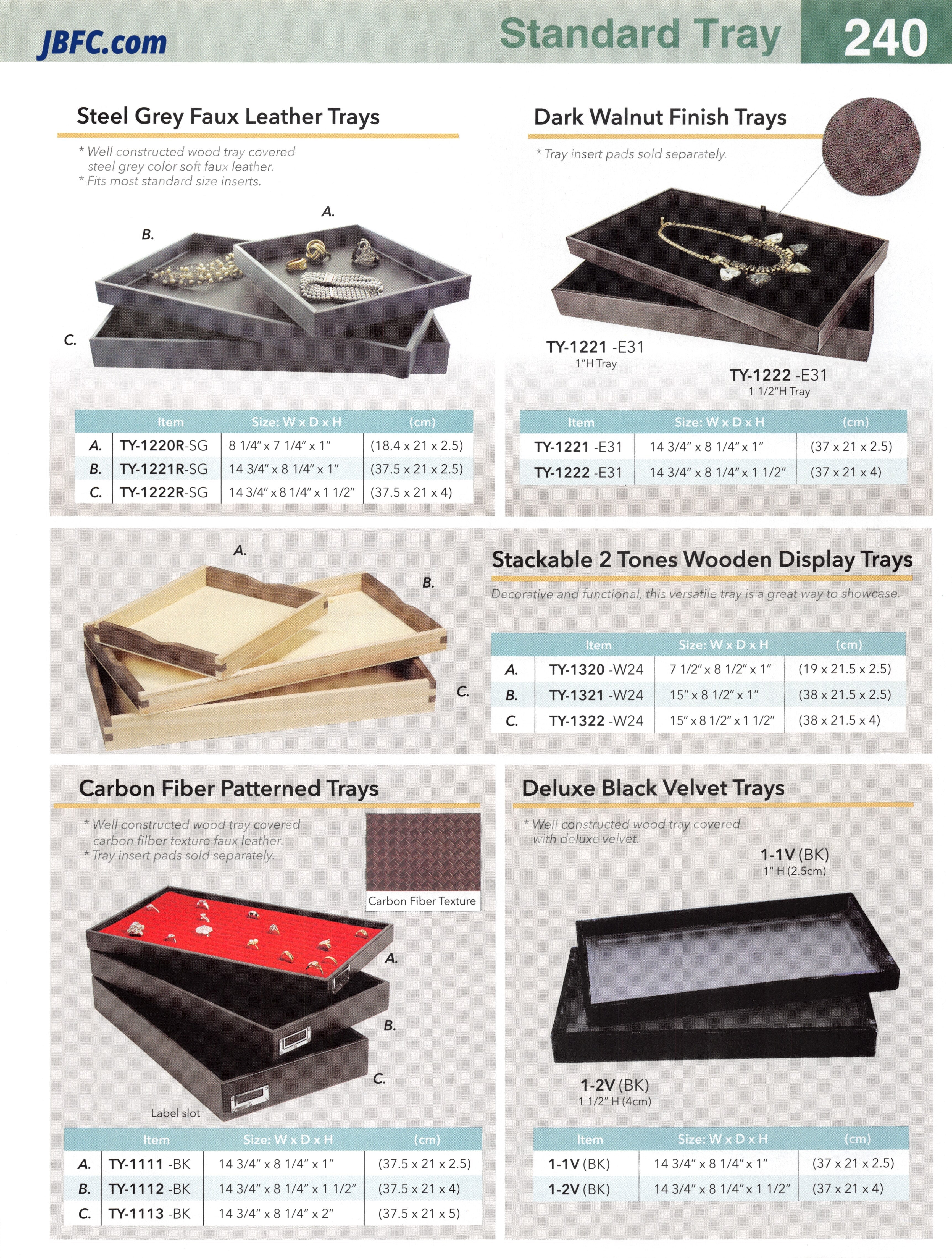 14 3/4 x 8 1/4 x 1 - Bandejas de terciopelo negro de lujo