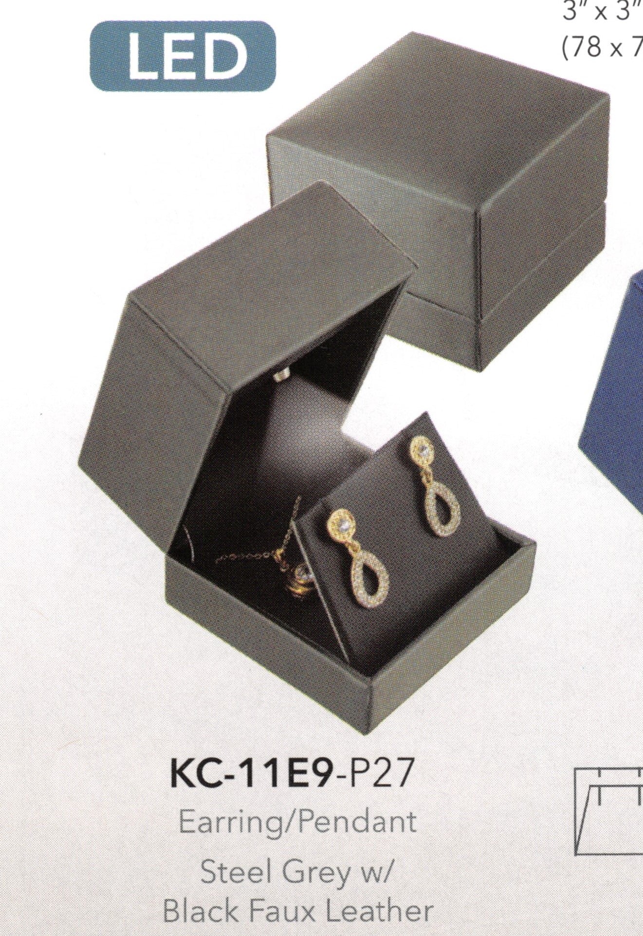 Pendiente/Colgante x Azul acero con piel sintética negra - Caja de acero con LED de piel sintética