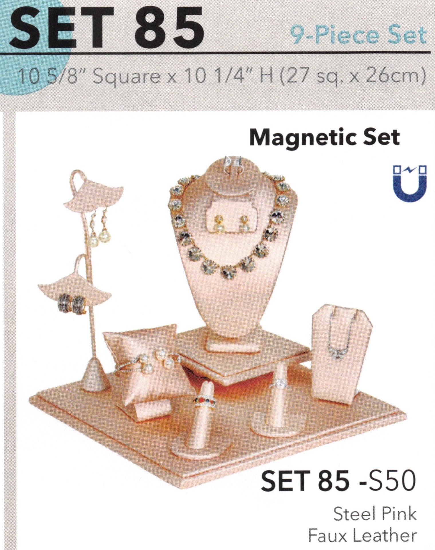 Conjunto de exhibición - Juego de expositores magnéticos (9 piezas) - acero rosa