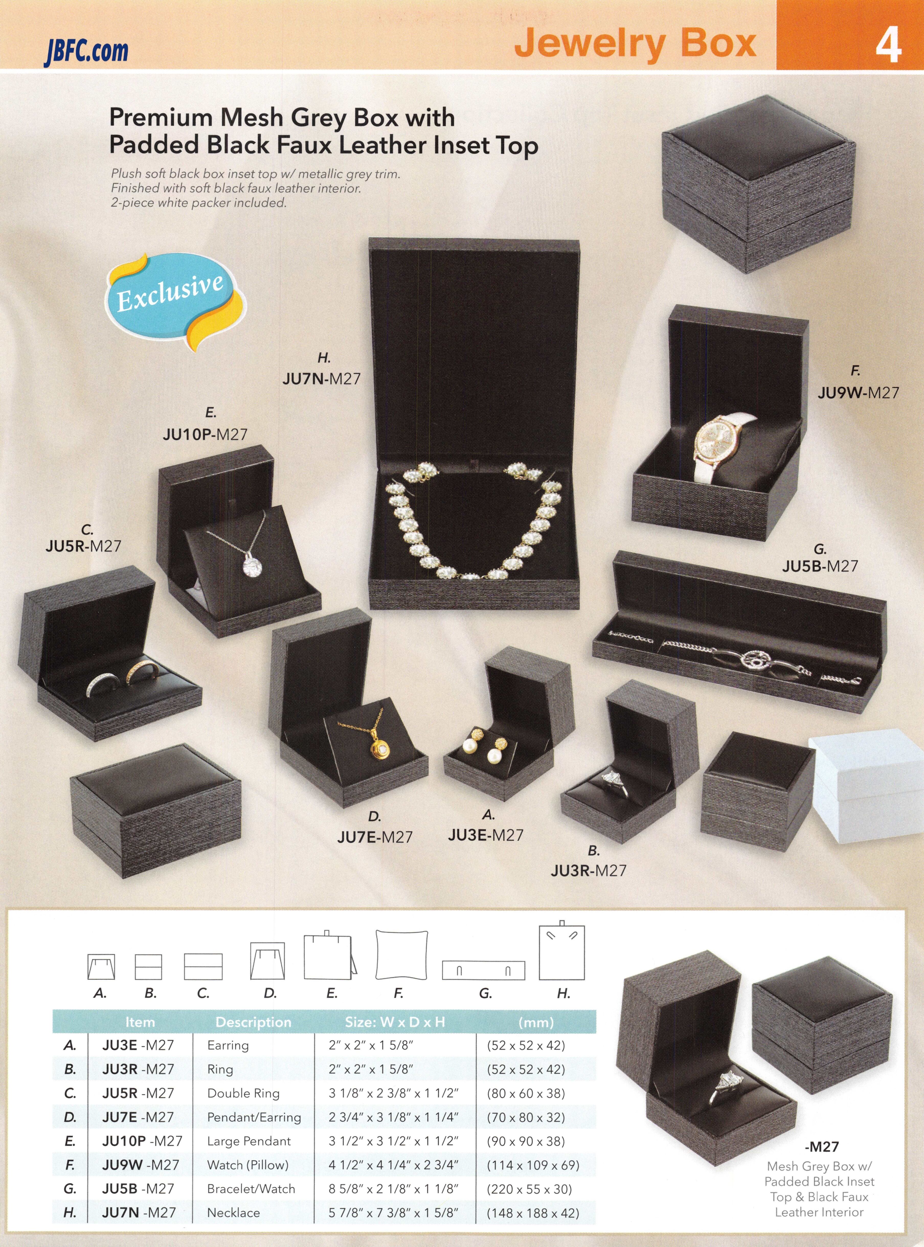 Parte superior con inserción de caja negra suave de felpa con borde gris metálico. Acabado con interior de cuero sintético negro suave. Empaque blanco de 2 piezas incluido.