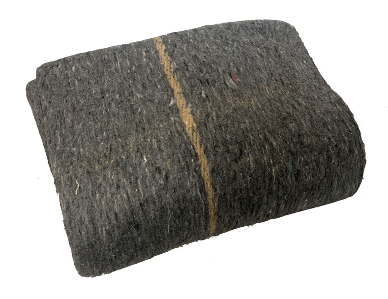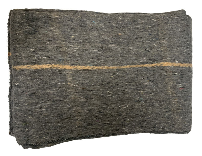 Manta de hilo sintético gris de 58" x 88" que pesa 3,25 libras y viene empaquetada en una bolsa de polietileno