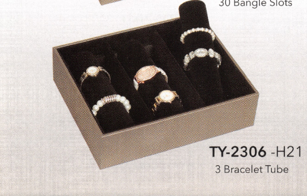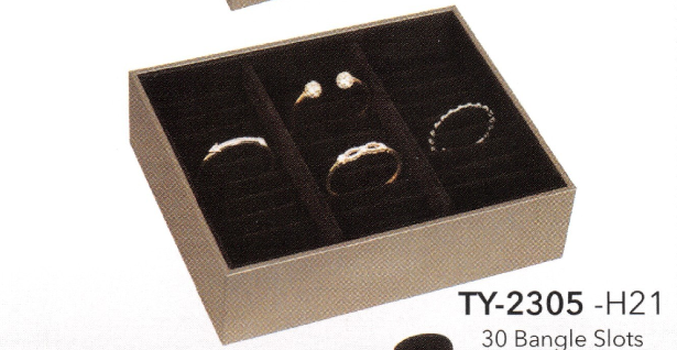 Brazalete x Ranuras - 30 x Piel sintética gris glaciar con inserto negro - Bandeja de exhibición con tapa