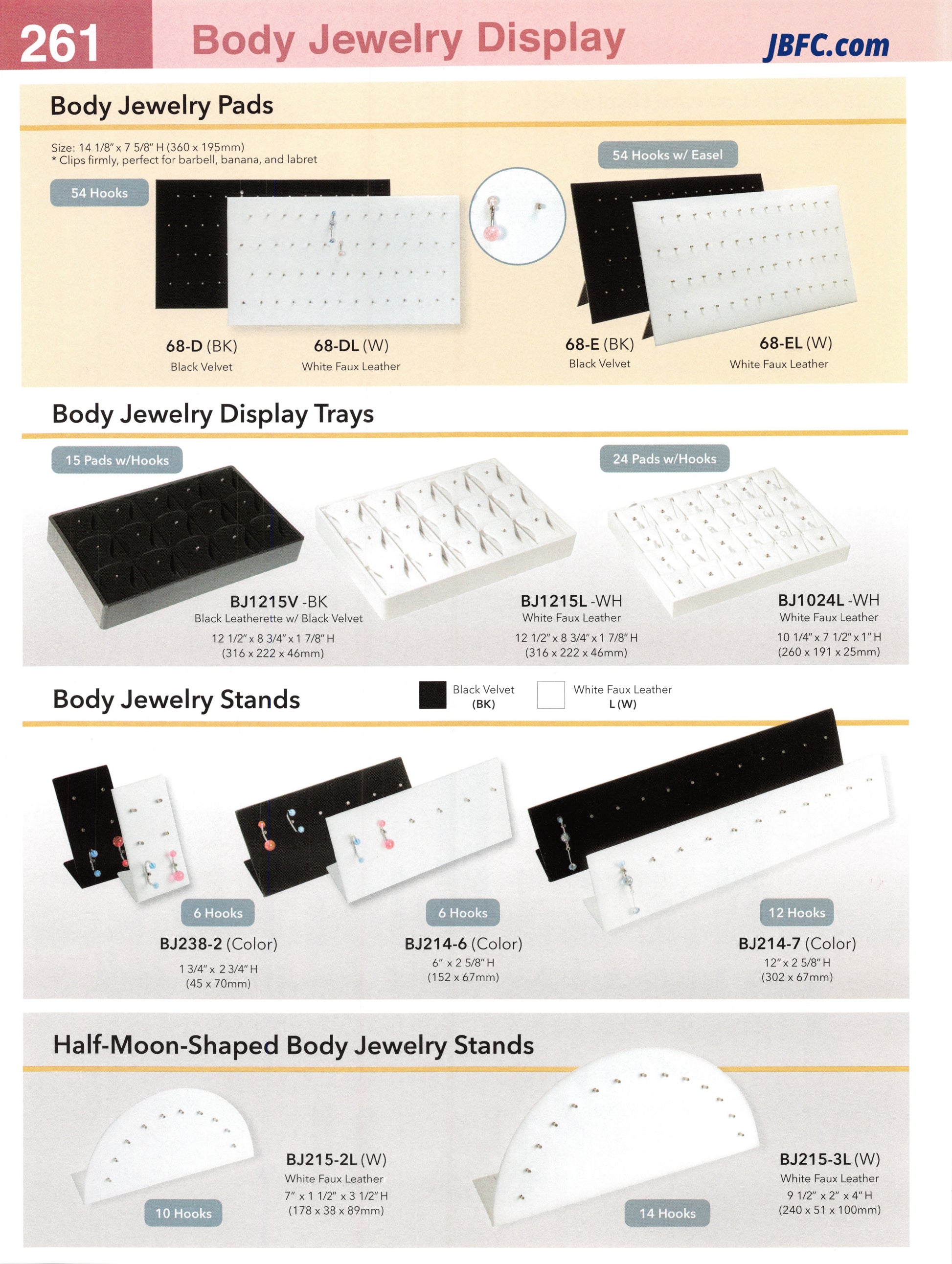 24 Pads with Hooks x White Faux Leather - Body Jewelry Display Trays