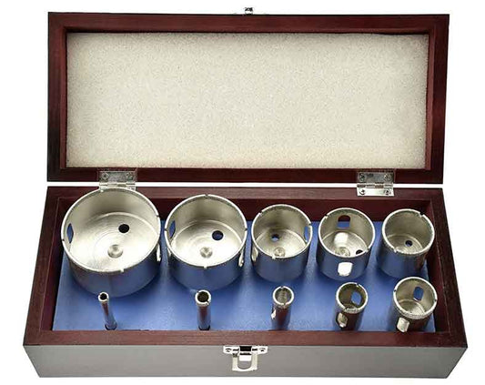 10-piece 80 Grit Stone Diamond Hole Saw Set in Wooden Case