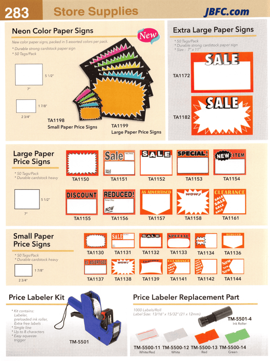 Large Paper Price Signs - 7" x 5 1/2" - 50 pcs. Pack