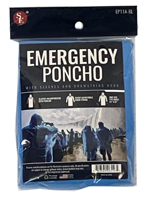 30-Piece Display of Water-Resistant Emergency Poncho with Hood Attached & Full Sleeve - 61" x 69"