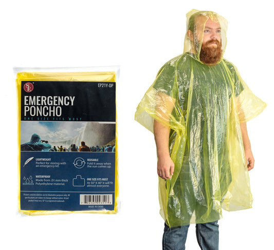 Yellow Emergency Poncho, 50"x40" (One Size Fits Most)