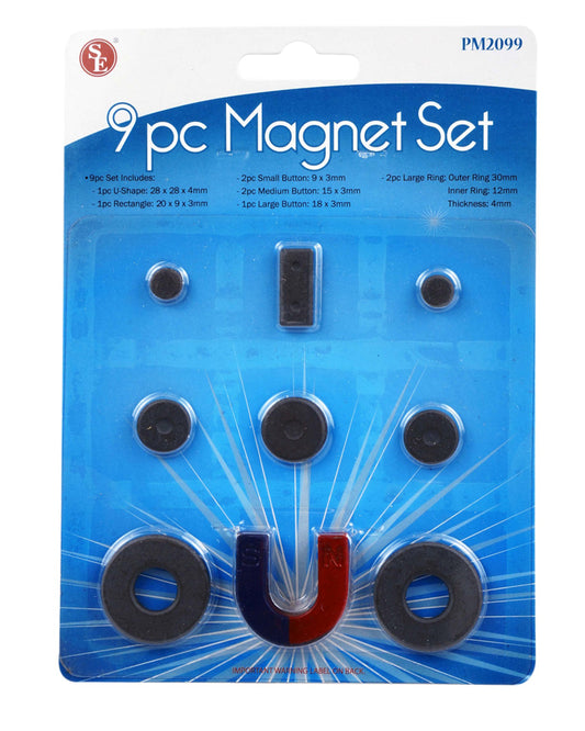 9-Piece Set of Ferrite Magnets (U-Shape,Rectangle,Small Button,Medium Button,Large Button & Large Ring