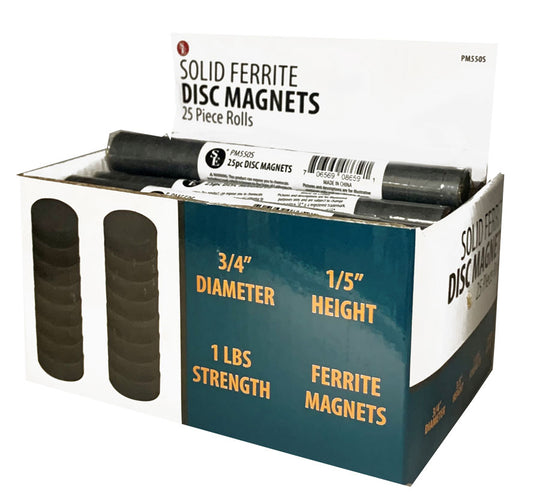 500-piece display of 3/4"/1LB SOLID Ferrite Disc Magnets