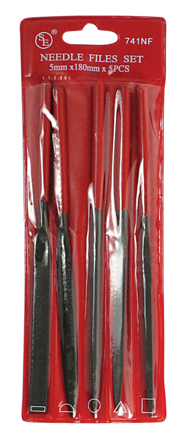 5-piece set of 7" Medium Cut Needle Files with Dipped Handle (5mm x 180mm)
