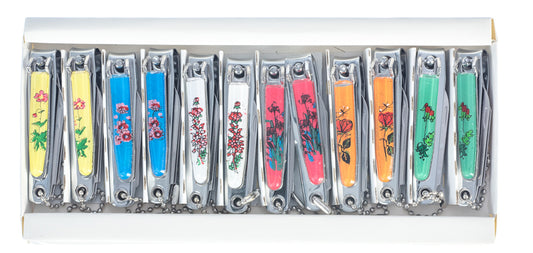12-piece display of 5-1 Nail Clipper, Assorted Design with Ball Keychain