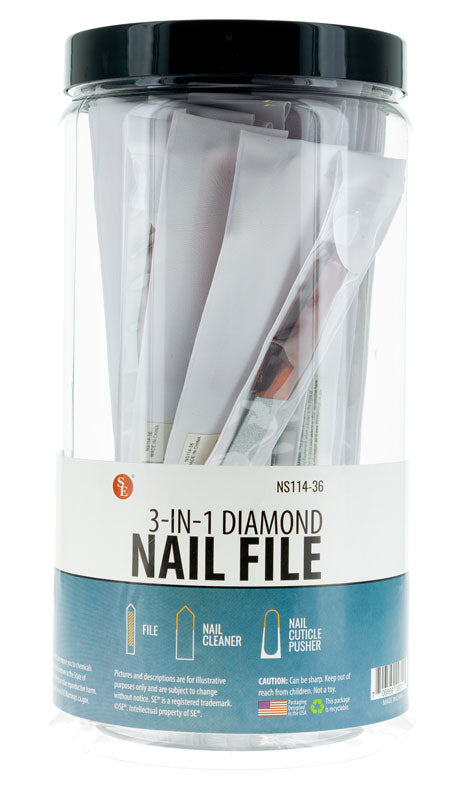 36-piece jar of 7 Inch 3-IN-1 Diamond Nail File in Pouch
