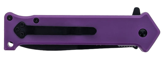 Spring Assisted Dagger Point Pocket Knife with Purple Handle, Pocket Clip & Lanyard Hole, Box Pack