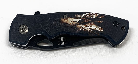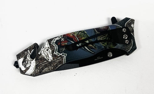 3.1/4" Spring Assisted Pocket Knife With Clip,Window Breaker & Seatbelt Cutter (Military Men Design)