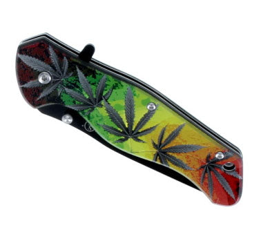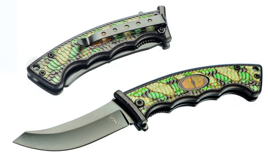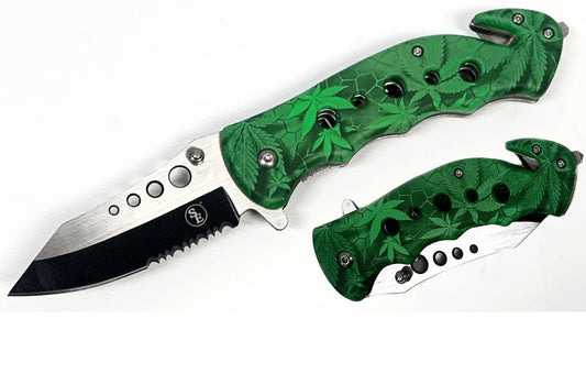 4.5" Spring Assisted Green Leaves Design Drop Point/Half Serrated Blade Pocket Knife, Clip/Window Breaker/Seatbelt Cutter