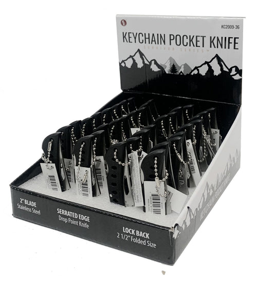 36-Piece Display of 4.1/2" Mini Lockback Pocket Knife With Ball Keychain (Black)