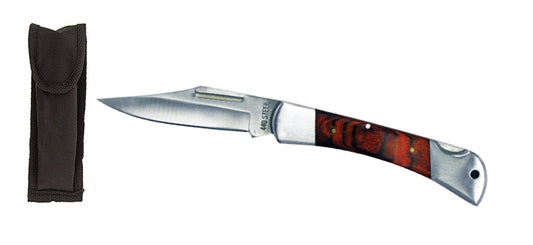 3.3/4" Paka Wood Handle Lock back Pocket Knife with Nylon Pouch & Belt Loop, Wood Color May Vary