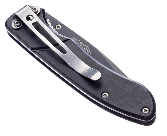 Spring Assisted Black Metal Blade/Body Pocket Knife With Clip