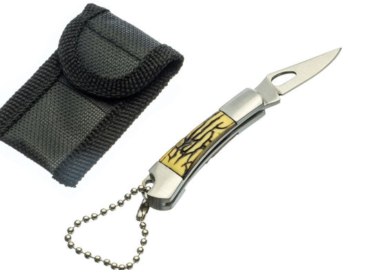 2" Mini Double Sided Bone Handle Pocket Knife with Chain & Pouch
