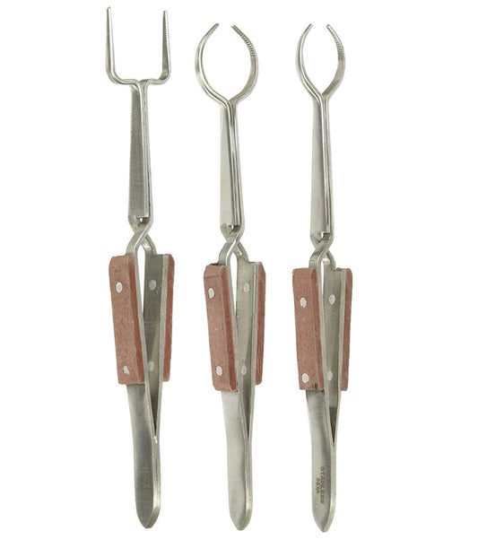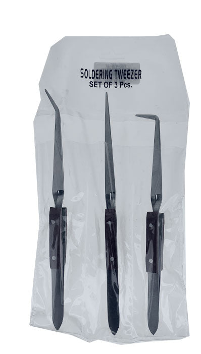 3-piece set of Professional Quality Heat Resistant Fiber Grip Tweezers, consists of 2 Rounded & 1 Square Tip, India