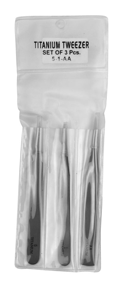 3-piece set of Professional Quality Titanium Tweezers, consists of Tweezer # 5, 1 & AA, India