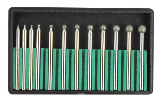 12-piece High Quality Ball Round Head Diameter Bur Set: Grit 150, Assorted Head Sizes: 1/32"-1/4"