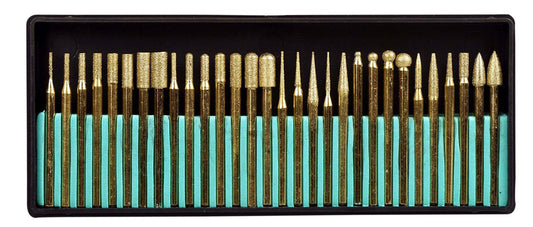 30-piece Titanium Coated Assorted Diamond Bur Set: Grit 120-150